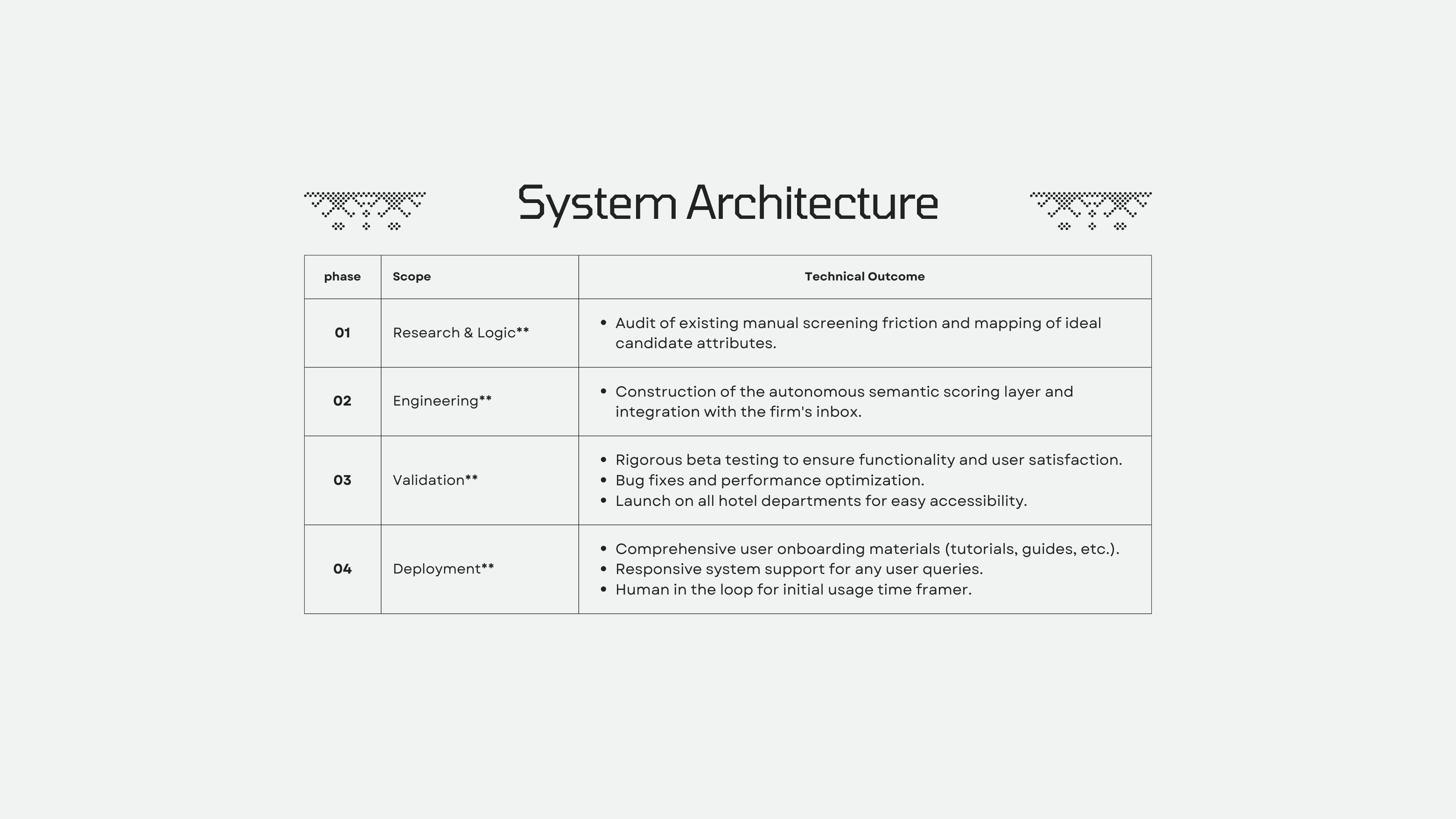 A boutique recruitment agency was struggling with "Information Overload." For every open mandate, they were receiving over 500 applications, 80% of which were unqualified. The staff was spending roughly 40 hours per week performing initial screenings—a manual task that led to "decision fatigue" and delayed the submission of top-tier talent to clients. By the time a human recruiter identified a "perfect match," that candidate had often already been placed by a faster competitor. The firm was physically unable to scale its placement volume without hiring more expensive administrative staff.